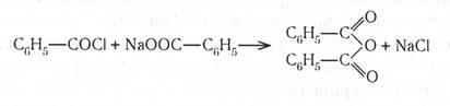 При действии хлористого бензоила на пероксид натрия получается кристаллический пероксид бензоила: