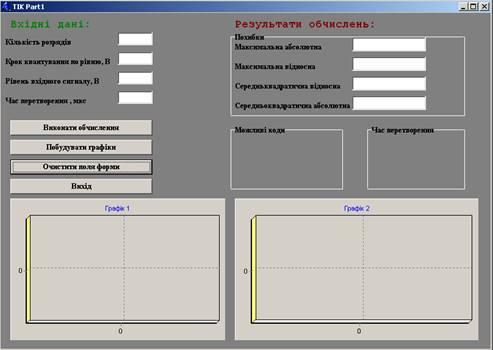В результаті натискання даної кнопки вікно програми повертається в початковий стан, тобто стираються всі введені дані, всі результати обчислень і побудовані графіки.
