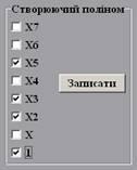 при натисканні кнопки "Записати", що знаходиться в тому ж полі, для введення створюючого поліному.