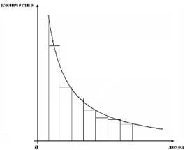 Эта огибающая функция в наиболее точной мере может быть задана функцией . е – это экспонента, т.е. это конкретное число, а следовательно константа. Функция стремительно убывает, что говорит о том, что найти человека с ростом значительно меньше среднего показателя довольно проблематично, а точнее - почти невозможно. Это и называется нормальным распределением.