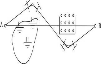 . Положення траси в рівнинних районах визначається контурними перешкодами, тобто ситуацією. В цих випадках ухил місцевості менший допустимого, а тому намагаються мати пряму трасу, і виконують трасування за заданим напрямком. Проте, зустрічаються перешкоди, такі як водотоки, болота, великі яри, населені пункти, цінні сільськогосподарські угіддя і інші, які вимагають відхилення траси в той чи інший бік (рис. 2).