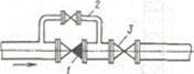 Малюнок 1 - Схема пристрою обвідної лінії до зворотного клапана: 1 - зворотний клапан; 2 - обвідна лінія із засувкою; 3 - засувка на напірній лінії насоса