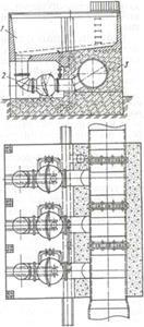 Малюнок 3 - Резервуар для впуску води, сполучений з анкерною опорою: 1 - резервуар; 2 - зворотний клапан; 3 - напірний трубопровід