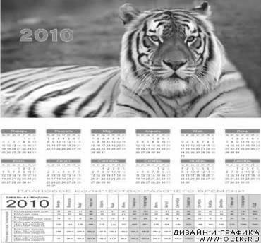 Такой тип календаря — наиболее простая форма издания. Это календарь-ежегодник в виде домика, содержащий перечень дней года, расположенных по месяцам в форме таблицы. Дополнительные сведения, помещаемые в нем, служат украшением в данном примере это фотографией тигра.Так же есть специальная таблица планового количества рабочего времени на месяц, квартал, полугодие и год. Особый интерес таблица планов вызывает у бухгалтеров и всех кто связан с учётом рабочего времени.