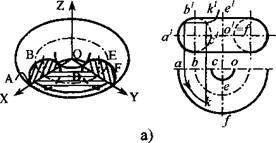 (рис. 2, в, г). Пл. ХОZ и УОZ пересекают его по параллельным прямым ЕD, FК, NР и LМ, а пл. ХОY и ей параллельные - по окружностям DPКМ и (ЕNFL).