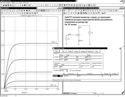 1. Расчет передаточных функций по постоянному току (DC —Alt+3) Арсенид-галлиевый полевой транзистор (GaAsFET)