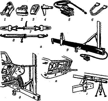 Рис. 4. Приспособления для выполнения правки деформированного участка кузова: