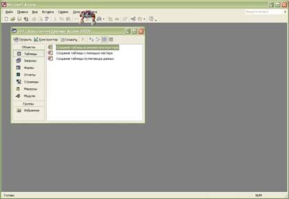 В окне базы данных теперь будут находиться также названия этих таблиц.
