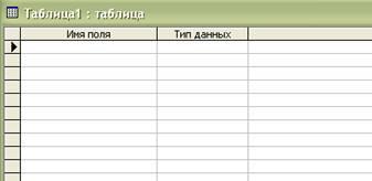 В окне базы данных щелкаем на кнопке «Создание таблицы в режиме конструктора». На экране появляется окно конструктора таблиц.