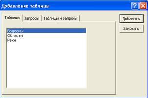 Для этого разобьем исходную таблицу на три:1 «название реки»; «название водоема, куда река впадает»; «протяженность»; «глубина»; «код водоема»; «код области»2 «код водоема»; «водоемы».3 «код области»; «область». После запуска MicrosoftAccess нажимаем на кнопку «Новая база данных». В диалоговом окне «Файл новой базы данных» задаем базе данных имя и место, где она должна быть сохранена. После этого откроется окно базы данных.