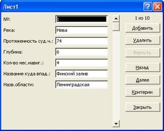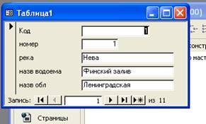 В окне базы данных щелкаем дважды на значении «Река». На экран выводится таблица вида: