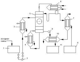 , где она подогревается до температуры кипения. Нагретая смесь поступает на разделение в ректификационную колонну 5