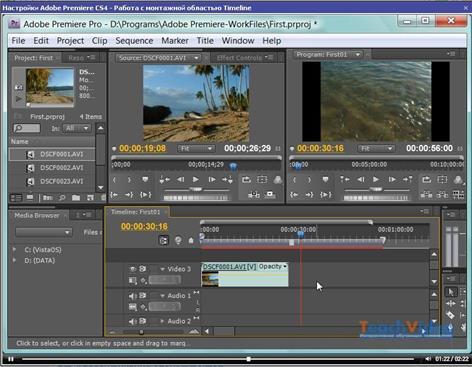 – программа, предназначенная для начинающих пользователей. В ней доступна полная поддержка форматов DV и MPEG-2 для цифрового видео. А для музыкального сопровождения фильма можно использовать музыкальные файлы в формате MP3 или звуковые дорожки с аудиодиска. Работа с программой достаточно проста благодаря продуманному и дружественному к пользователю интерфейсу. В видеофильм можно вставить титры, воспользоваться плавными переходами между отдельными фрагментами и добавить голос или фоновую музыку к получившемуся клипу.