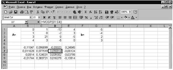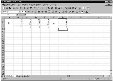 Введём матрицу A и вектор b в рабочий лист MS Excel (см. рис. 21)