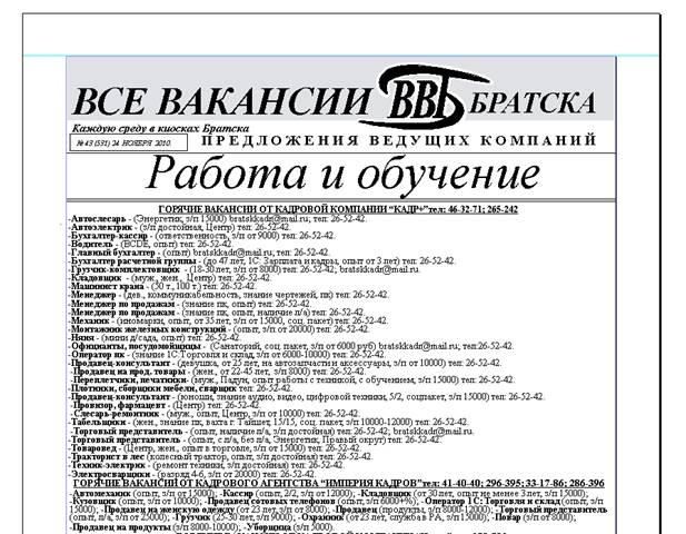 ИНФОРМАЦИОННЫЕ ТЕХНОЛОГИИ В ИЗДАТЕЛЬСКОМ ДЕЛЕ НА ПРИМЕРЕ ГАЗЕТЫ «ВСЕ ВАКАНСИИ БРАТСКА»