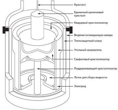 Основным химическим элементом, используемым при производстве процессоров, является кремний, самый распространенный элемент на земле после кислорода. Это базовый компонент, из которого состоит прибрежный песок (кремниевый диоксид); однако в таком виде он не подходит для производства микросхем.Чтобы использовать кремний в качестве материала для изготовления микросхемы, необходим длительный технологический процесс, который начинается с получения кристаллов чистого кремния по методу Жокральски (Czochralski). По этой технологии сырье, в качестве которого используется в основном кварцевая порода, преобразуется в электродуговых печах в металлургический кремний. Затем для удаления примесей полученный кремний плавится, дистиллируется и кристаллизуется в виде полупроводниковых слитков с очень высокой степенью чистоты (99,999999%). После механической нарезки слитков полученные заготовки загружаются в кварцевые тигли и помещаются в электрические сушильные печи для вытяжки кристаллов, где плавятся при температуре более 2500° по Фаренгейту. Для того чтобы предотвратить образование примесей, сушильные печи обычно устанавливаются на толстом бетонном основании. Бетонное основание, в свою очередь, устанавливается на амортизаторах, что позволяет значительно уменьшить вибрацию, которая может негативно сказаться на формировании кристалла.Как только заготовка начинает плавиться, в расплавленный кремний помещается небольшой, медленно вращающийся затравочный кристалл. По мере удаления затравочного кристалла от поверхности расплава вслед за ним вытягиваются кремниевые нити, которые, затвердевая, образуют кристаллическую структуру. Изменяя скорость перемещения затравочного кристалла (10-40 мм в час) и температуру (примерно 2500° по Фаренгейту), получаем кристалл кремния малого начального диаметра, который затем наращивается до нужной величины. В зависимости от размеров изготавливаемых микросхем, выращенный кристалл достигает 8-12 дюймов (20-30 мм) в диаметре и 5 футов (около 1,5 м) в длину.