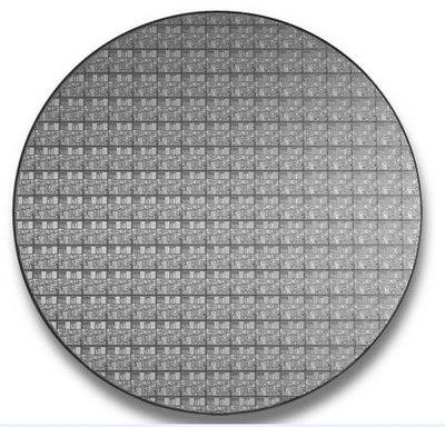 Диаметр стандартной подложки, используемой в полупроводниковой промышленности в течение уже многих лет, равен 200 мм или приблизительно 8 дюймов(рис). Таким образом, площадь подложки достигает 31 416 мм2. Первая версия процессора Pentium 4, изготовленного на 200-миллиметровой подложке, содержала в себе ядро Willamette, созданное на основе 0,18-микронной технологии с алюминиевыми контактными соединениями, расположенными на кристалле площадью около 217 мм2. Процессор содержал в себе 42 млн. транзисторов. На 200-миллиметровой (8-дюймовой) подложке могло разместиться до 145 подобных микросхем. Процессоры Pentium 4 с ядром Northwood, созданные по 0,13-микронной технологии, содержат в себе медную монтажную схему, расположенную на кристалле площадью 131 мм2. Этот процессор содержит уже 55 млн. транзисторов. По сравнению с версией Willamette ядро Northwood имеет удвоенный объем встроенной кэш-памяти второго уровня (512 Кбайт), что объясняет более высокое количество содержащихся транзисторов. Использование 0,13-микронной технологии позволяет уменьшить размеры кристалла примерно на 60%, что дает возможность разместить на той же 200-миллиметровой (8-дюймовой) подложке до 240 микросхем. Как вы помните, на этой подложке могло разместиться только 145 кристаллов Willamette.В начале 2002 года Intel приступила к производству кристаллов Northwood на большей, 300-миллиметровой подложке площадью 70 686 мм2. Площадь этой подложки в 2,25 раза превышает площадь 200-миллиметровой подложки, что позволяет практически удвоить количество микросхем, размещаемых на ней. Если говорить о процессоре Pentium 4 Northwood, то на 300-миллиметровой подложке можно разместить до 540 микросхем. Использование современной 0,13-микронной технологии в сочетании с подложкой большего диаметра позволило более чем в 3,7 раза увеличить выпуск процессоров Pentium 4. Во многом благодаря этому современные микросхемы зачастую имеют более низкую стоимость, чем микросхемы предыдущих версий.В 2003 году полупроводниковая промышленность перешла на 0,09-микронную технологию. При вводе новой поточной линии не все микросхемы на подложке будут годными. Но по мере совершенствования технологии производства данной микросхемы возрастет и процент годных (работающих) микросхем, который называется выходом годных. В начале выпуска новой продукции выход годных может быть ниже 50%, однако ко времени, когда выпуск продукта данного типа прекращается, он составляет уже 90%. Большинство изготовителей микросхем скрывают реальные цифры выхода годных, поскольку знание фактического отношения годных к бракованным может быть на руку их конкурентам. Если какая-либо компания будет иметь конкретные данные о том, как быстро увеличивается выход годных у конкурентов, она может скорректировать цены на микросхемы или спланировать производство так, чтобы увеличить свою долю рынка в критический момент. Например, в течение 1997 и 1998 годов у AMD был низкий выход годных, и компания утратила значительную долю рынка. Несмотря на то что AMD предпринимала усилия для решения этой проблемы, ей все же пришлось подписать соглашение, в соответствии с которым IBM Microelectronics должна была произвести и поставить AMD некоторые ею же разработанные микропроцессоры.По завершении обработки подложки специальное устройство проверяет каждую микросхему на ней и отмечает некачественные, которые позже будут отбракованы. Затем микро