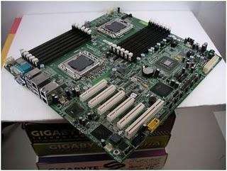 Фотографии инженерного образца процессора Intel Nehalem были размещены недавно на сайте Xtremesystems. На фото Nehalem-EP находится слева, а справа — Intel Core 2 Extreme QX9770. Обратим внимание на изменившуюся форму контактных площадок: Материнская плата Gigabyte 7TESN-RN с двумя сокетами LGA1366 для этого процессора, оборудованная 12 разъёмами DDR3-памяти (по шесть на каждый CPU):