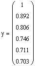 В первом столбце приведены значения x, во втором столбце - соответствующие значения приближенного решения