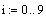 Определим диапазон изменения номера точки i=0,1, ..., 9 для вычислений с шагом h=0.1