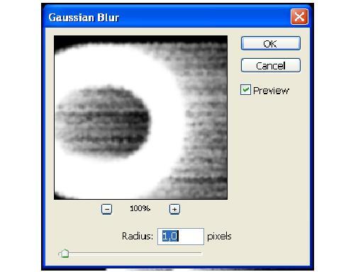 4. Размытие изображения. Воспользуйтесь фильтром Filter – Blur – GaussianBlur. Радиус размытия зависит от размера изображения и выбранного шрифта. Чем больше буквы, тем большим должно быть значение радиуса.
