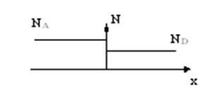 примесной изменяются скачком на границе раздела. Будем считать, что переход является несимметричным, например NA