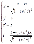 Преобразования Лоренца. Поскольку уравнения Максвелла не были инвариантными относительно преобразований Галилея, т.е. вопреки требованиям принципа относительности изменяли свою форму при переходе из одной инерциальной системы отсчета в другую, по правилам, задаваемым соотношениями: