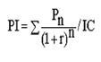 Метод розрахунку чистого наведеного ефекту допомагає розраховувати його абсолютний розмір. Але абсолютний розмір NPV далеко не завжди дає правильне уявлення про економічну ефективність інвестиції. Об'єктивніше ситуацію можна оцінити, якщо зіставити NPV декількох проектів з сумою початкових інвестицій у них. Саме порівняння чистого наведеного ефекту та початкових інвестицій і лежить в основі розрахунку індексу рентабельності інвестиції. Формула його розрахунку така:
