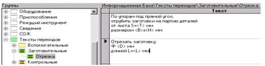 Вносимое в ТП с клавиатуры оснащение, наименования операций, тексты инструкций и переходов при добавлении их в Информационную базу попадают в корневые группы ИБ в соответствии с типом.