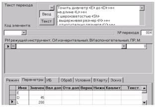 Кроме заполнения переходов и операций посредством выбора их элементов из Информационной базы, имеется возможность прямого ввода с клавиатуры нового оснащения, наименований операций, текстов переходов. Вводимые с клавиатуры данные могут запоминаться в ИБ и использоваться в дальнейшем.