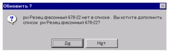По мере ввода наименования с клавиатуры, система производит поиск похожего наименования режущего инструмента в ИБ. Если такого наименования в ИБ не найдено, то при переходе на другую строку или нажатии [Enter] появится запрос: