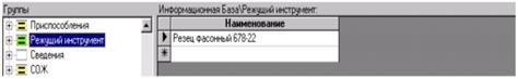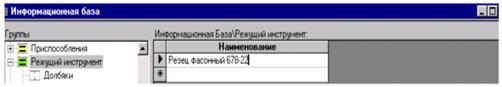 При открытии ИБ кнопкой […] производится автоматический вход в группу «Режущие инструменты». После выбора