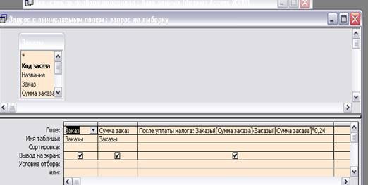 Над полями запросов можно выполнять вычисления. При этом создается новое вычисляемое поле. Для создания выражений используется окно Построитель выражений.