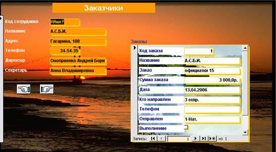 5. Разработать перечень основных и вспомогательных форм для ввода, редактирования и других операций по ведению базы данных. Разработать состав полей, органов управления форм и их дизайн. Создать формы и протестировать их работу в базе данных. Оформить элементы фирменного стиля. Заполнить с помощью этих форм справочные таблицы с постоянной информацией.