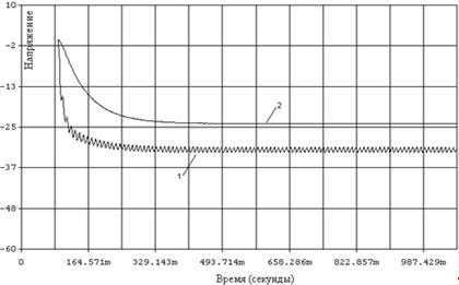 Из-за особенностей ElectronicsWorkbench вместо трансформатора был использован источник переменного напряжения с необходимыми выходными характеристиками (расчетными выходными характеристиками трансформатора). Были добавлены сопротивления Rtv (2 Ом) — сопротивление обмоток трансформатора; Ro (1 Ом) — согласующее сопротивление; Rn (0.1 кОм) — сопротивление блока СИФУ (Uвых/Iвых).