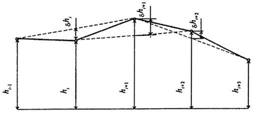 - относительные отметки предыдущей и последующей точек.