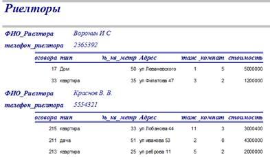 Рисунок 16 (результат запроса «имущество за риелтором»)