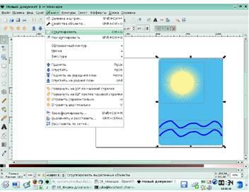Чтобы сгруппировать несколько объектов, нужно выделить их все и нажать Ctrl+G (или выбрать в меню Объект пункт Сгруппировать) (рис. 3). Чтобы разгруппировать одну или несколько групп, нужно выбирать их и нажимать Shift+Ctrl+G(или выбрать в меню Объект пункт Разгруппировать). Сами группы можно объединять в группы, как и любые другие объекты: таким образом, группы могут быть рекурсивными с неограниченными уровнями вложенности.