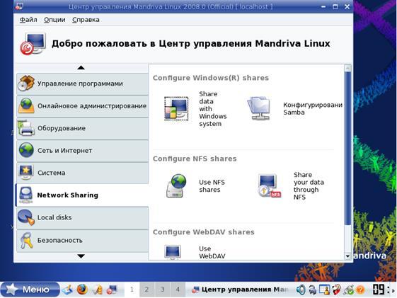 Центр Управления MandrivaLinux 2008 вкладка “Сеть и Интернет” .