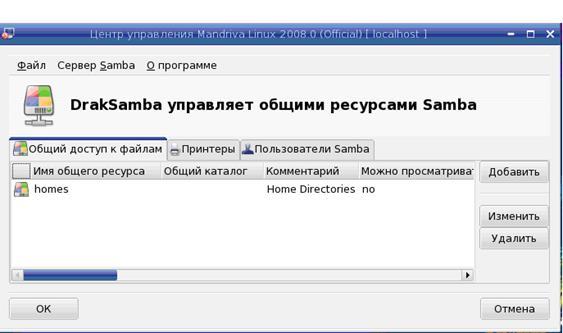 сконфигурировать (при необходимости установить) файловый сервер Samba (он, как правило, поставляется в комплекте дистрибутива Linux). (Рис. 6.,7)