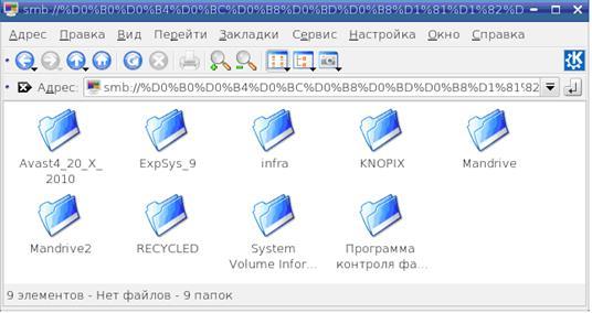 7. Пройдя процедуру идентификации пользователя, возможен вход в систему, и просмотр и дисков и папок базового компьютера с помощью файлового менеджера. (Рис. 11).