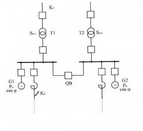 Выбрать токоограничивающий реактор на кабельной линии электростанции в целях ограничения токов короткого замыкания до величины, указанной в таблице вариантов, таблица 1.1. Выбор реактора на отходящей кабельной линии осуществить в предположении, что секционный выключатель QB- включен.