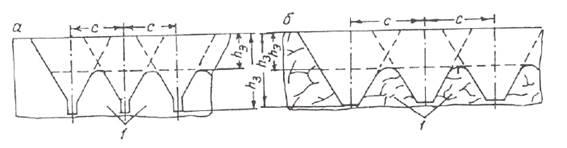 Угол заострения наконечников находится в пределах 20 - 30°. Во всех случаях угол заострения должен быть таким, чтобы при любом заглублении зубьев задний угол Ф был не менее 5° при рыхлении полускальных и скальных пород. При меньшем значении заднего угла ф происходит смятие породы задней гранью наконечника, в результате чего возрастает сопротивление породы рыхлению и повышается износ наконечника.