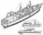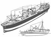 Большим рыболовным флотам в отдаленных районах лова придаются также обслуживающие суда (рис. c). Это многоцелевые суда длиной примерно 60 м, оборудованные многочисленными устройствами и приспособлениями и обладающие хорошими мореходными качествами. Для ухода за больными из экипажей промысловых судов на них предусмотрены лазареты и операционные, а для снабжения обслуживаемых судов - кладовые (для провианта, промыслового оборудования, запчастей), а также ремонтные мастерские. Кроме того, обслуживающие суда могут быть оборудованы биологическими и метеорологическими лабораториями для исследований и наблюдений. Эти суда похожи на траулеры и оборудованы множеством промысловых приспособлений.