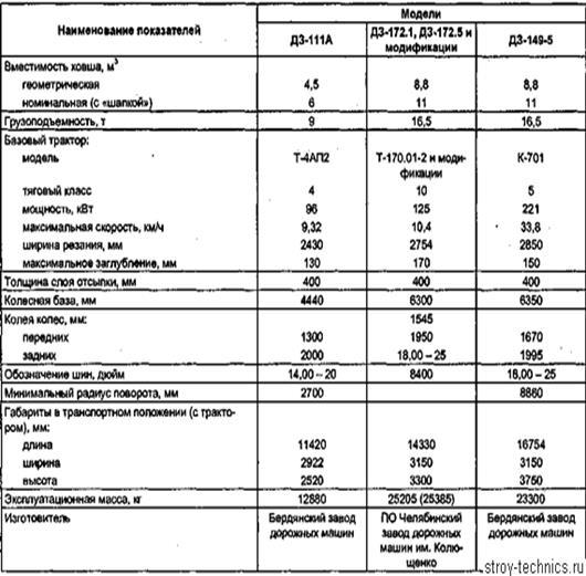 Передбачений типорозмірний ряд самохідних скреперів з ковшами на 4,5; 8; 10; 15 и 25 м3.
