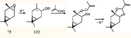 Гомоаллильные перегруппировки могут сочетаться с другими ионными перегруппировками. Так, при конденсации 3-карена с формальдегидом по Принсу среди продуктов реакции обнаружены два циклических эфира 14