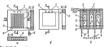 Фильтр-прессы. Они относятся к фильтрам периодического действия, работающим под давлением. Направления сил тяжести и движения фильтрата в них перпендикулярны.
