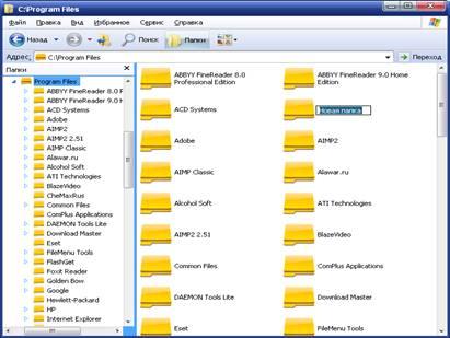 На правій панелі з'явиться значок нової папки з текстовим полем, у якому можна набрати ім'я нової папки, після чого натиснути клавішу Enter