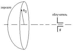 В зависимости от размещения облучателя относительно зеркала можно получить то или иное значение КНД. При определенном оптимальном отношении Ro