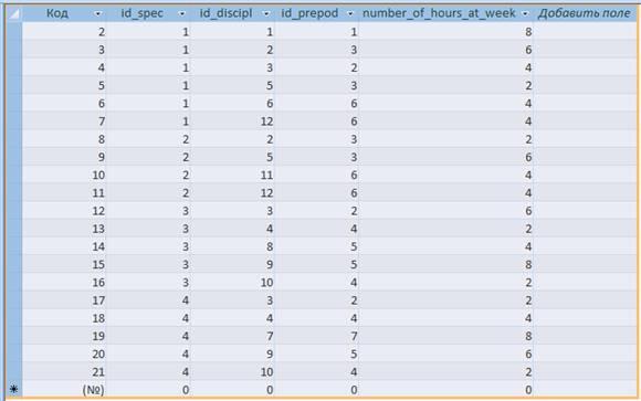 Таким образом, имеем нормализованную реляционную базу данных, в которой очень легко производить изменения. Так, например, если некий преподаватель уволился и вместо него пришел другой преподаватель и взял на себя все те же самые его часы, то достаточно (если нет необходимости в сохранении записей уволенного преподавателя) изменить имя ушедшего преподавателя на имя нового. Изменение названия специальности (например, если «Госуправление» переименуют в «Муниципальное управление») не отразится на связях в таблице, изменится лишь название специальности в таблице SPEC. Изменение наименования дисциплины, либо изменение ее вида опять же не приводит к существенным изменениям. Централизованное повышение почасовой ставки сразу всем сотрудникам, занимающим одну должность, производится через таблицу DOLJNOST. Используя таблицу PLAN мы можем очень быстро (и не затрагивая содержимого остальных таблиц) изменить учебный план, добавить новые часы, удалить исключенные из плана занятия, сменить преподавателя, изменить число часов.